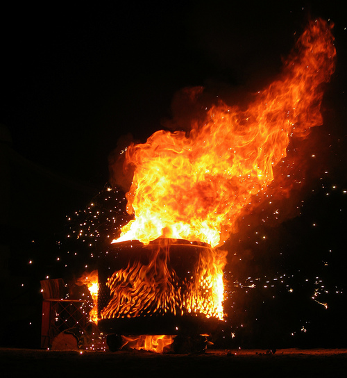 டம்ளரிலிருந்து ஆற்றுகையில் டபராவிற்கு பயணிக்கும் காப்பியையும், பல்சார் பைக்கில் பயணிக்கையில் முகத்தை கோபமாக வருடிக்கொண்டு செல்லும் எதிர்க்காற்றையும், ரோட்டில் மழை நீரோட்டத்தையும், கடல் அலைகளையும், வானத்து மேகங்களையும், சூரியனில் புயல்களையும், நரம்புக்குழாய்களில் நம் ரத்த ஓட்டத்தையும் திரவங்களின் அமளி ஓட்டத்திற்கு உதாரணமாக கூறமுடியும். மேலே கொடுத்துள்ள, வலையில் இருந்து சுட்ட, விமானம் கிளம்புகையில் பின்னால் சுழலும் காற்றில் ஏற்பட்டுள்ளதும் அமளிதான். டர்புலண்ட் வோர்டெக்ஸ் என்பார்கள். அமளிச்சுழல். கீழே கொடுத்துள்ள சொக்கபானையின் தீஜ்வாலைகளும் அமளிதான். டர்புலண்ட் ப்ளூம் என்பார்கள். அமளி குஞ்சம்?
