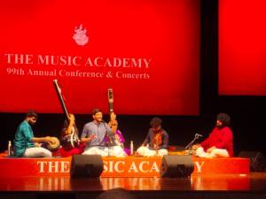 அகடெமியில் பிற்பகல் கச்சேரி செய்த ஆதித்யநாராயணன் விரைவில் முன்னனியில் ஒரு சுற்று வரப்போகிறார். தோடியும் காம்போதியும் அமர்க்களமாக ஆலாபனை செய்தார். தியாகையரின் ‘எந்துகு தயராத’ (ரூபகம்) கிருதியையும் ‘ஆனந்த நடனம் ஆடினார் ததிமி ததிமி என கனகசபையில்’ என்கிற பல்லவியை திஸ்ர திரிபுடை தாளம் நாலு களை சவுக்கத்திலும் இரு மொழிகளின் உச்சரிப்பு நேர்த்தியோடு செம்மையாகப் பாடினார். பல்லவியில் அனுலோமம் திரிகாலம் செய்து நிரவலுக்கும் ராகமாலிகை ஸ்வரங்களுக்கும் (பௌளி குந்தலவராளி ராகங்களில்) அவகாசம் வைத்து நேரத்திற்குத் தனி-ஆவர்த்தனம் விட்டுக் கச்சேரியை நன்கு நிர்வகித்தார்.